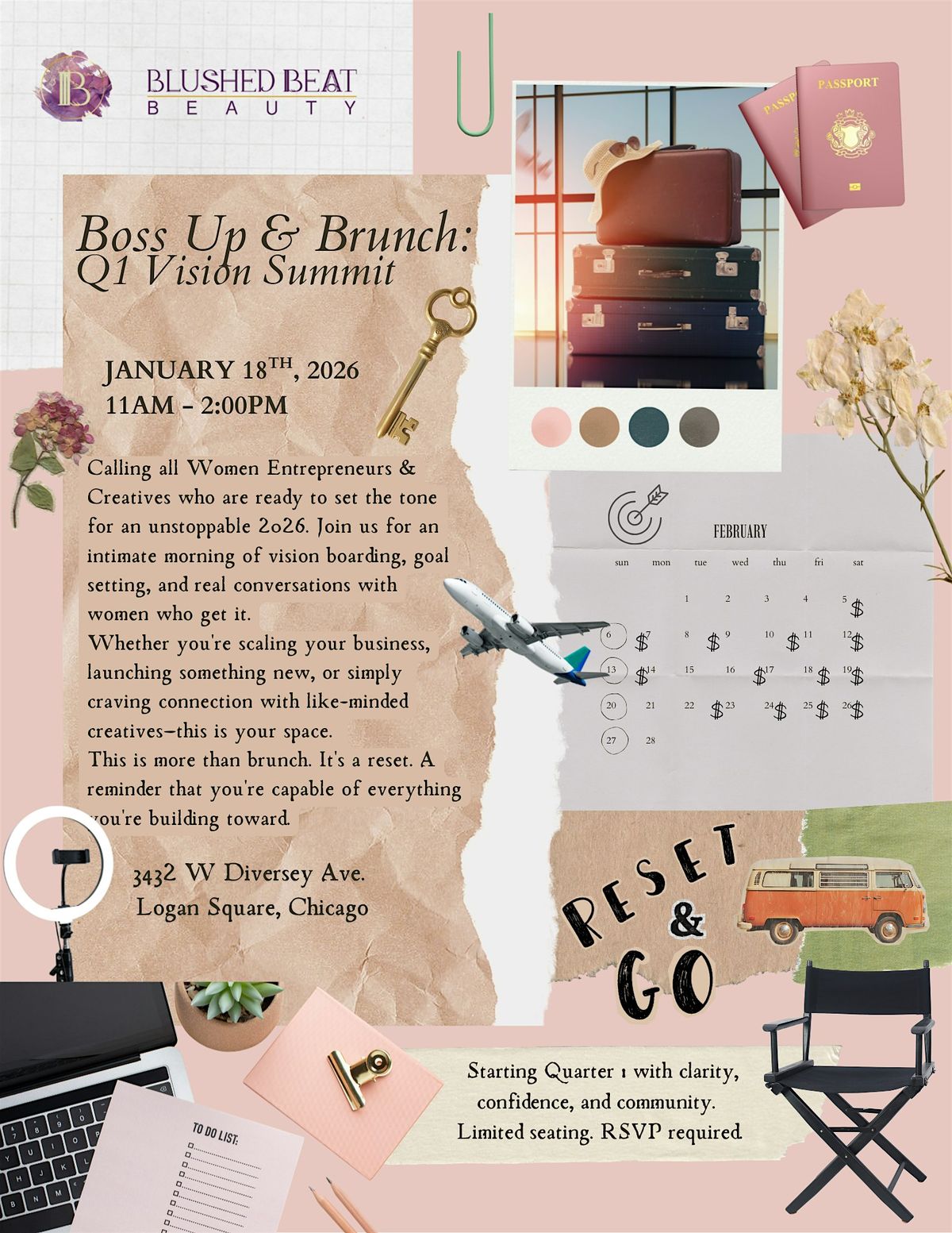 Join us on January 11th from 11AM–2PM at 3432 W Diversey Ave., Logan Square, Chicago for an intimate gathering of vision boarding, goal setting, and real talk with like-minded women building something beautiful.