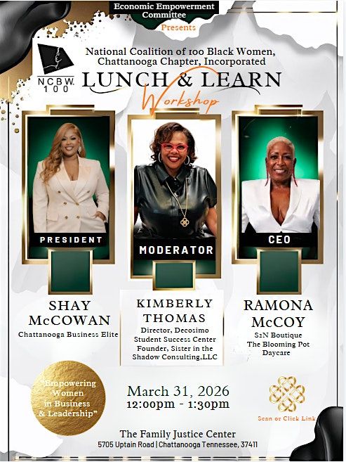 The National Coalition of 100 Black Women, Chattanooga Chapter, Incorporated – Economic Empowerment Committee invites you to a dynamic Lunch & Learn Workshop focused on Empowering Women in Business & Leadership.