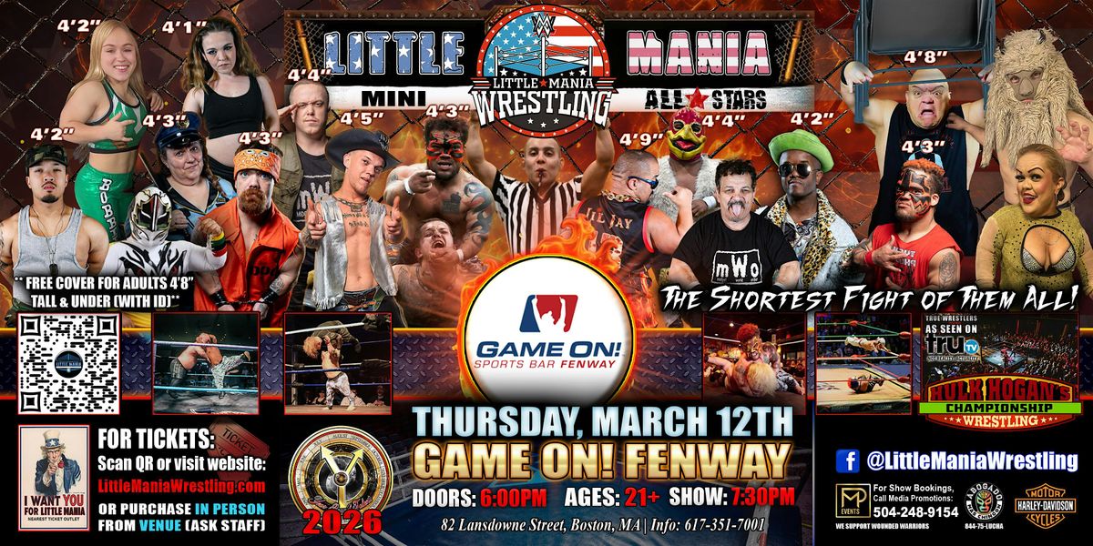 Boston, MA - Little Mania Mini Wrestling @ Game On! Fenway - Thursday!