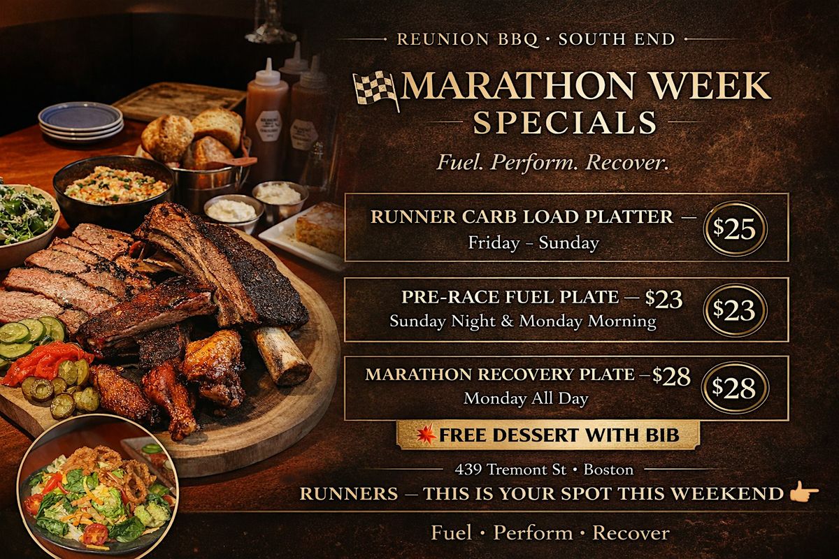Boston Marathon Fuel & Recovery HQ @ Reunion BBQ (Free Dessert for Runners