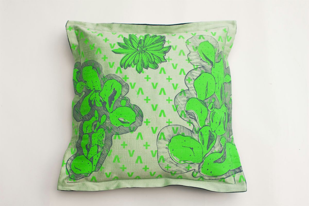 Botanical printing onto cushion cover using block printing technique