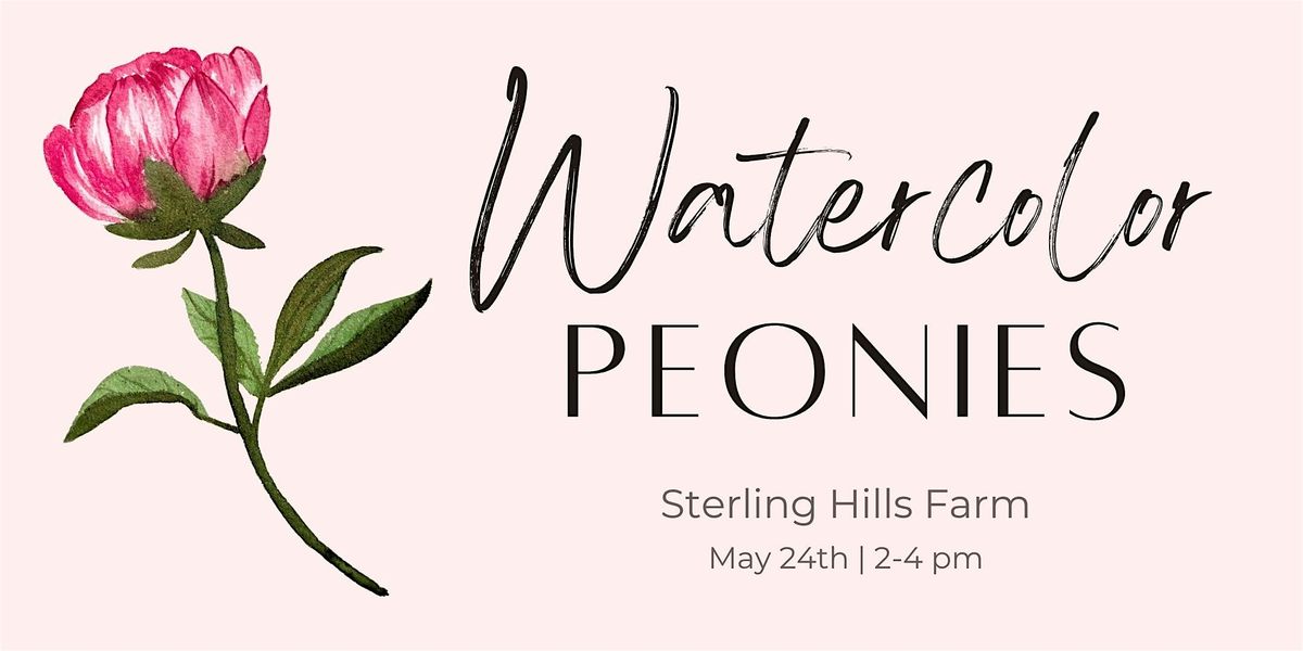 Join Angelica Boleta for an intimate peony watercolor workshop on Sunday, May 24th at 2 PM, held inside the newly built greenhouse at Sterling Hills Farm!