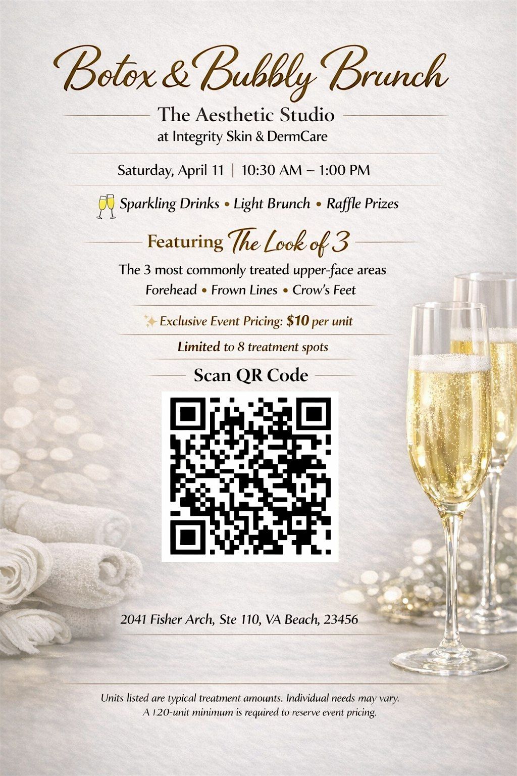 Join us for Botox & Bubbly Brunch at The Aesthetic Studio at Integrity Skin & DermCare for a fun, elevated morning of beauty, confidence, and self-care.