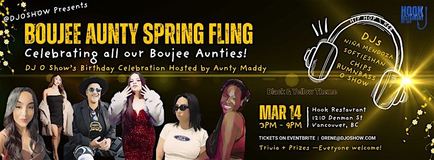 Hey fam, it’s time to shine and vibe at the Boujee Aunty Spring Fling — an in-person bash where glam meets fun! Dress to impress, bring your best dance moves, and let’s make memories that’ll last way beyond spring.