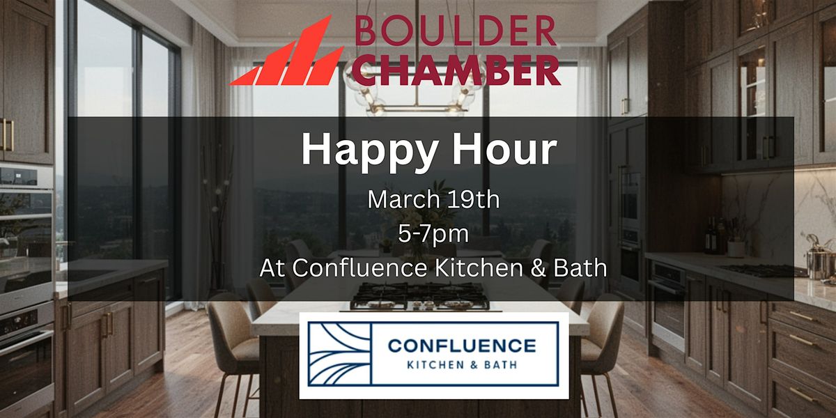 Join us for a fun in-person happy hour with the Boulder Chamber crew! It's the perfect chance to unwind, chat, and connect with fellow locals in a relaxed setting. Come enjoy tasty bites, great drinks, and awesome company at Confluence Kitchen and Bath. Don’t miss out on an evening filled with good vibes and networking — see you there!
