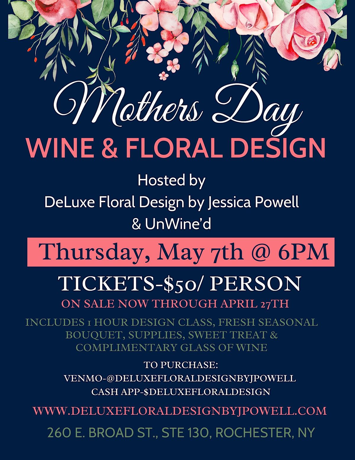 🍷 Pour a glass, play with petals, and treat yourself to a fun Mother's Day inspired floral design experience made just for YOU. Our experienced floral designer will guide you through the process, so no experience is necessary. Guaranteed good company, great drinks, and beautiful blooms. Don’t miss out on this unique event!