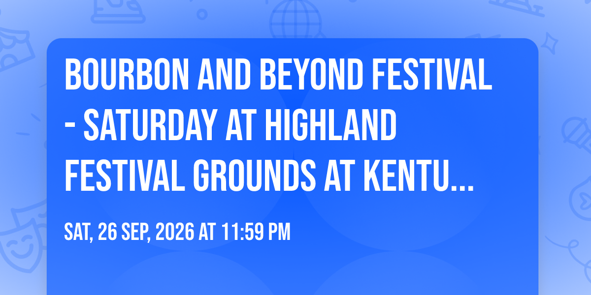 π Welcome to Bourbon and Beyond Festival - Saturday at Highland Festival Grounds at Kentucky Exposition Center, where dreams come alive and possibilities are endless! ποΈ Join us at Highland Festival Grounds at Kentucky Exposition Center in the heart of Louisville, KY for an event that defies expectations. π On September 26th, 2026 at 11:59 PM, be part of something truly extraordinary as we bring together innovation, entertainment, and pure magic. β¨ Every aspect has been carefully designed to ensure an unforgettable experience for all our guests. Whether you're seeking adventure, inspiration, or simply a break from the ordinary, this event promises to deliver beyond your wildest dreams. π Prepare for a journey into the extraordinary!