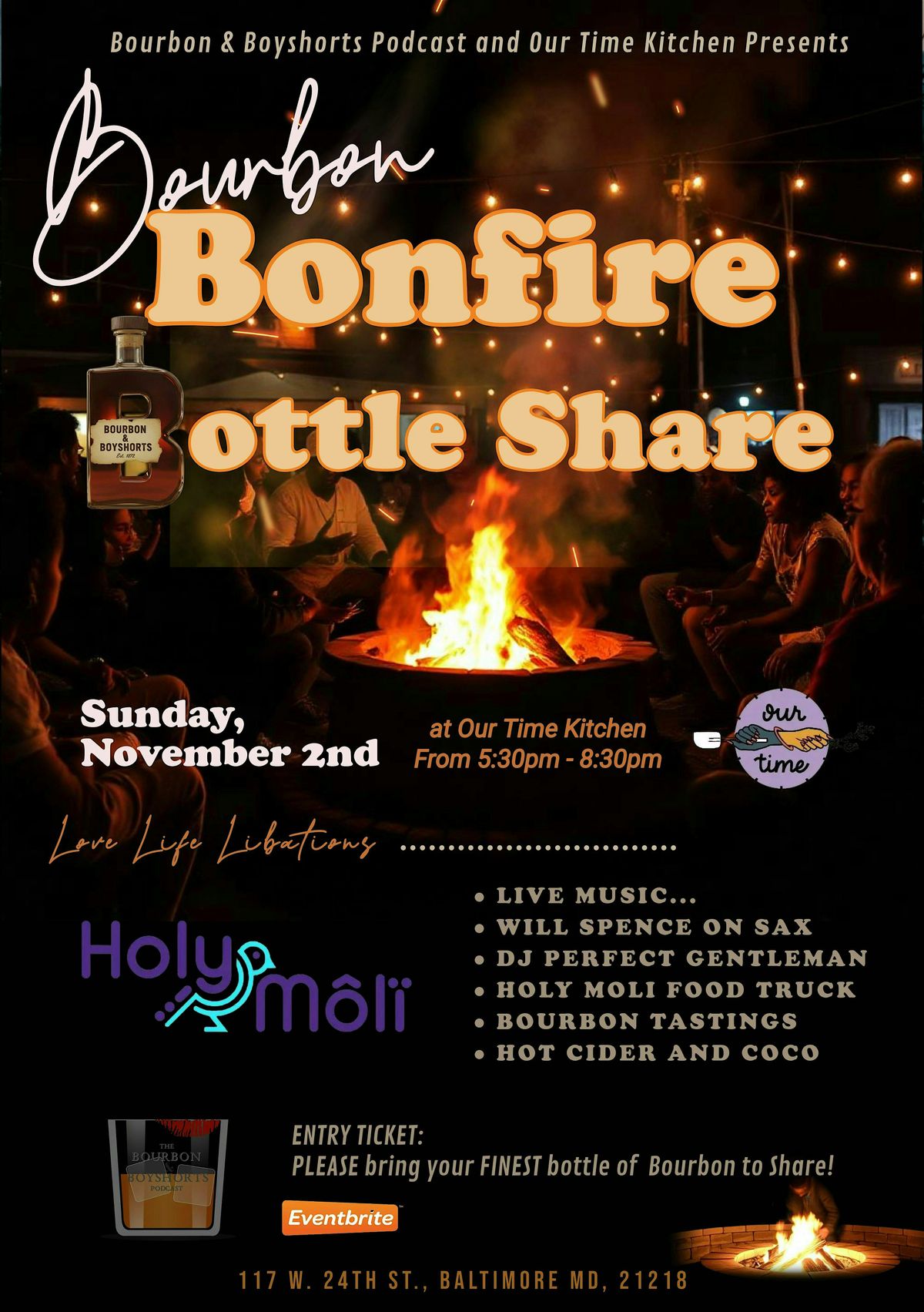 The Bourbon & Boyshorts Podcast 2nd Bottle Share “Bourbon Bonfire” Bottle Share. This is a time when you bring your BEST BOTTLE of BOURBON (and yes we mean best) to sip and share with others.