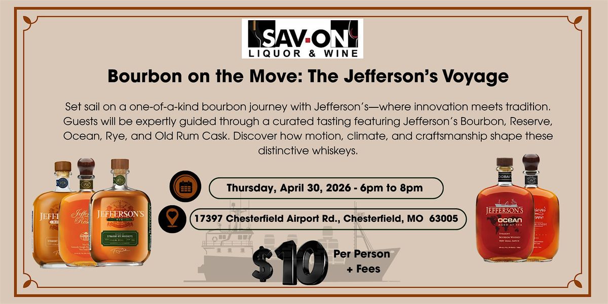 Join us for Bourbon on the Move: The Jefferson’s Voyage, an immersive tasting experience exploring one of the most innovative names in American whiskey.