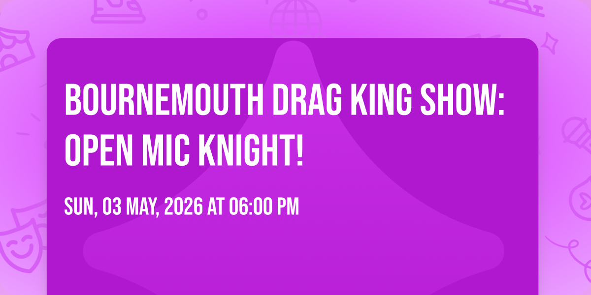 Bournemouth Drag King Show returns for a night of emerging talent! Join Dandy as he has invited 10 of the best up and coming drag kings from across Dorset and Hampshire for one royal night of spectacular drag king entertainment! Expect silly renditions of your favourite movies, iconic drag debuts and find out who will voted to become Bournemouth's first every Open Mic Knight!!Doors open from 7pm | Show starts from 7.30 pm