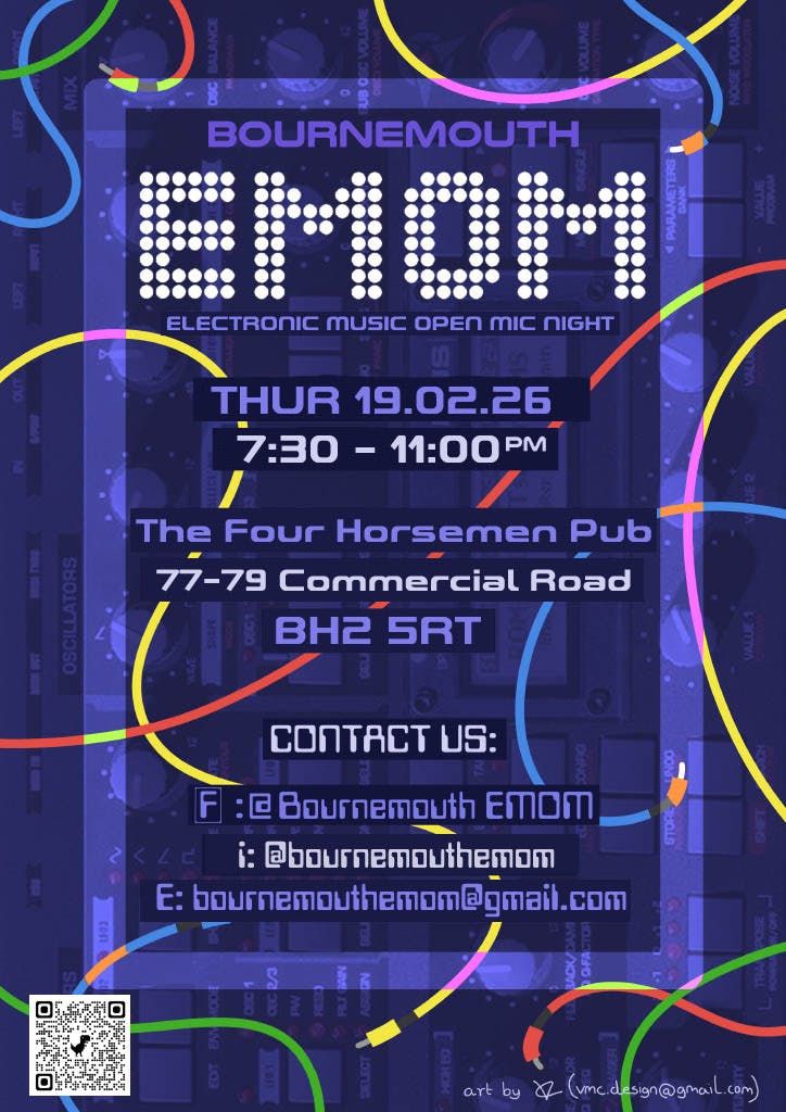 Bournemouth EMOM (Electronic Music Open Mic) is an open mic night strictly for electronic music. If you create electronic music and live in or around Bournemouth and want a place to perform it then this is for you. Likewise if you like live underground electronica in all its varied forms this is the place you will hear it. If you would like to be considered for a performance slot at this or our future monthly EMOM events, which are run on the 3rd Thursday of each month then contact us via email at [email protected]Disclaimer: