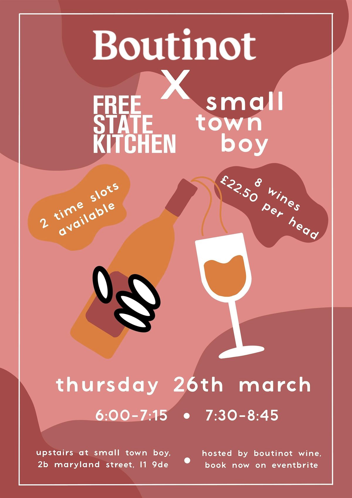 Come join us for the BOUTINOT WINE TASTING X FSK X STB event at Small Town Boy. Get ready to sip and savour some of the finest wines on March 26, 2026 6:00-7:15 or 7:30-8:45.