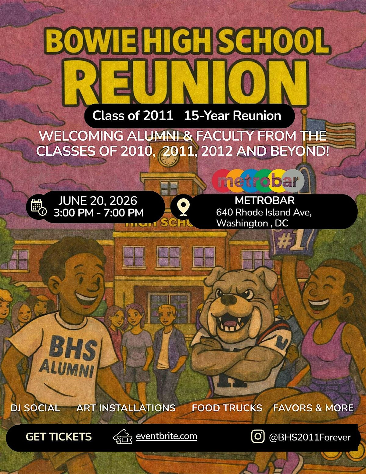 Join us as the Bowie High's Class of 2011 hosts its 15-Year Class Reunion in the heart of the nation’s capital at Metrobar — a breezy, one-of-a-kind venue set in a refurbished train, featuring art installations, an expansive outdoor space, and an atmosphere perfect for reconnecting.