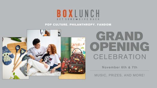 BoxLunch is your new destination for Pop Culture gifts - nope, we're not a restaurant. For every $10 you spend in-store helps provide a meal to Feeding America.The first 50 guests to visit BoxLunch at the Huntington Mall at the store's open on Saturday 11/6 at 10am & Sunday 11/7 at 11am will get a mystery gift card worth up to $100!