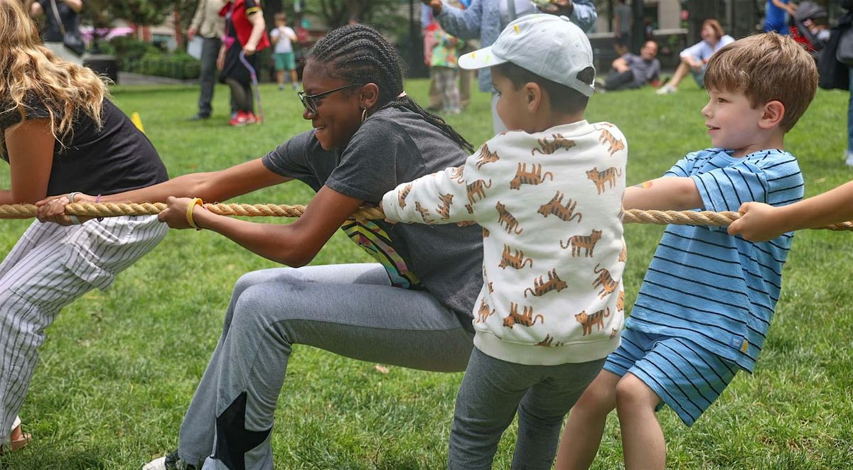 School’s out for the summer! Families are invited to take part in field games, water play, and our annual tug-of-war with their favorite coaches from & . Plus: A special drumming performance by .