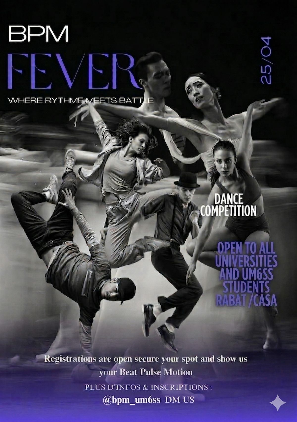 Ce billet donne accès au public souhaitant assister en tant que spectateur à la 1ère édition de la Compétition Interuniversitaire de Danse organisée par l’UM6SS, qui se déroulera le samedi 25 avril 2026 à Casablanca.