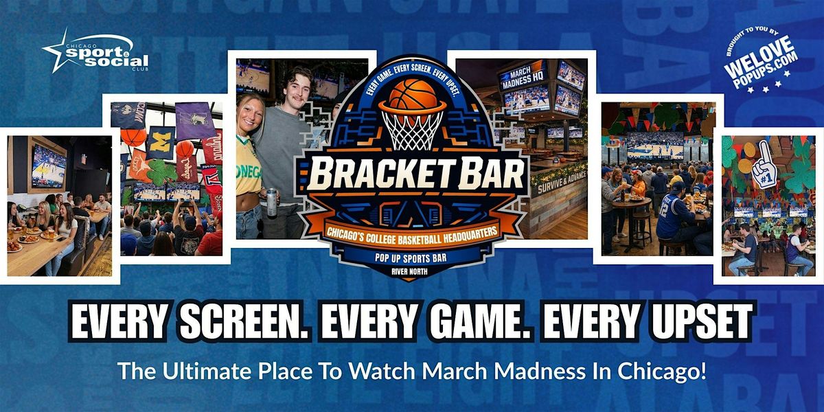 Bracket Bar takes over River North as the college basketball headquarters for the most electric weeks of the season. This 21+ indoor sports bar pop-up is built for nonstop games, stacked brackets, and an atmosphere where every buzzer beater hits harder. Every screen is on. Every matchup matters. Drinks are flowing, food is always close, and the energy stays high from the first tip to the final whistle.