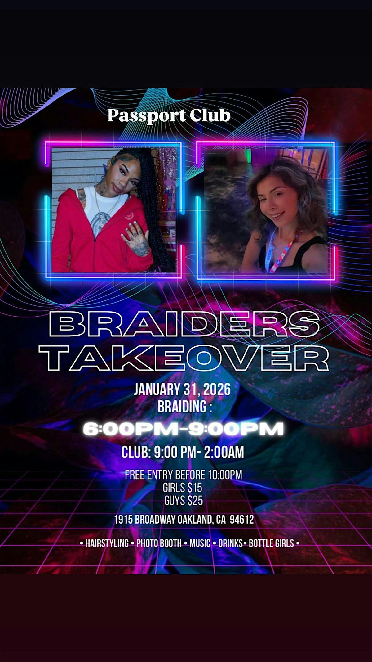 Get ready to dive into a super fun, in-person event with the art of braiding and having fun. Whether you're wanting to get braided or just curious, this gathering is the perfect chance vibe with fellow braid lovers and club with the braiders that take over!