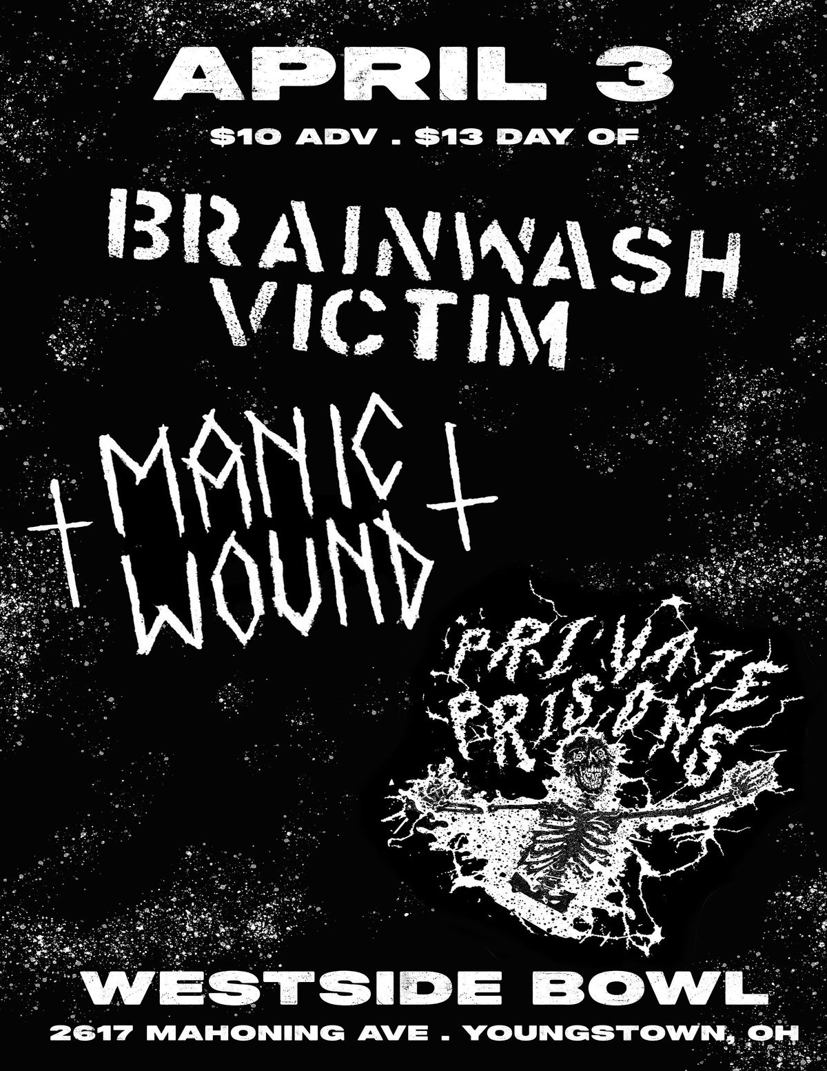 Rochester NY Brainwash Victim comes to the Westside Bowl with Manic Wound and Cleveland's Private Prisons!