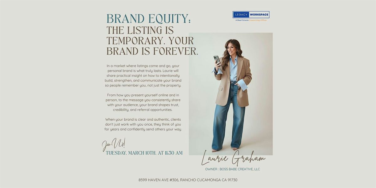 Join us on Tuesday, March 10th, 2026 at 11:30 AM at Legacy Workspace for a powerful branding-focused training led by Laurie Graham, owner of Boss Babe Creative, LLC.