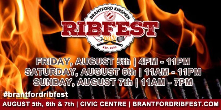 Brantford Ribfest is three days of great food, live music and family fun brought to you by the Brantford Kinsmen Club. Five of North America’s best Ribbers will take the BRANTFORD CIVIC CENTRE during the weekend, along with vendors, children’s entertainment, a beer tent and live entertainment on the main stage.Brantford will come alive with the smell of BBQ’ed ribs, fantastic food vendors, a family entertainment zone. The Brantford Ribfest brings the excitement of family-oriented fun for all ages and the thrill of BBQ competition together for three days of entertainment and amazing food. North America’s greatest rib teams are coming to Brantford to compete for top awards including Best Ribs, Best Chicken, Best Sauce, Best Pig Rig and People's Choice.
