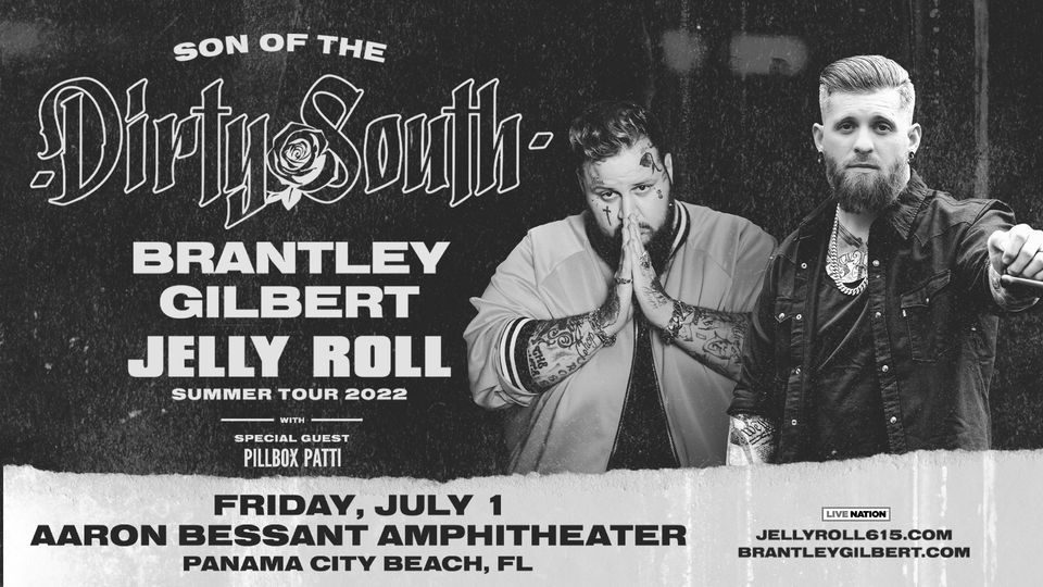 Brantley Gilbert and Jelly Roll with Pillbox Patti: Son of the Dirty South Tour in Panama City Beach, FL Public on sale is Friday May 3rd @ 10 AM @ https://bit.ly/BrantleyGilbertJellyRollPCB2022