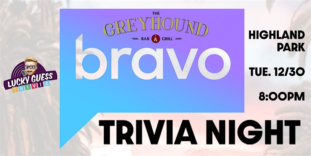 Come join us for a FREE, BRAVO-THEMED team trivia night at THE GREYHOUND BAR & GRILLE in HIGHLAND PARK, LOS ANGELES! Tuesday DECEMBER 30TH @ 8:00PM, hosted by Jeopardy Champion Brendan Sargent.