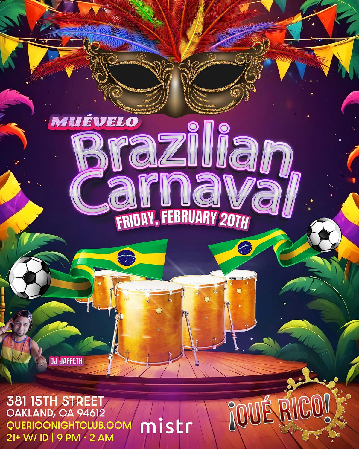 Join us as we celebrate Brazilian Carnaval at Que Rico, Celebrating the Rich Culture of Brazil and Carnaval.