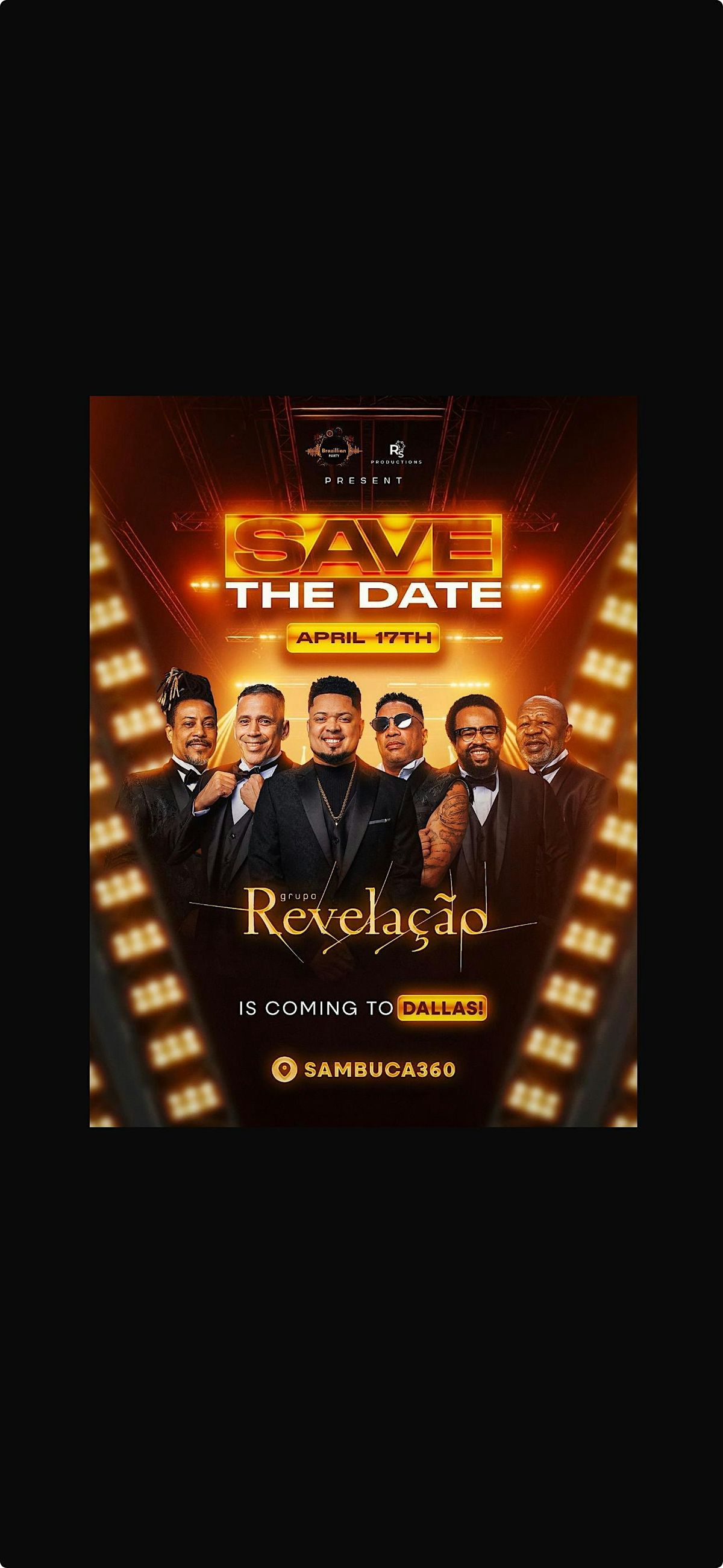 On April 17th, get ready to sing, dance, and experience unforgettable moments with the best Samba's band from Brazil: Grupo Revelacao.