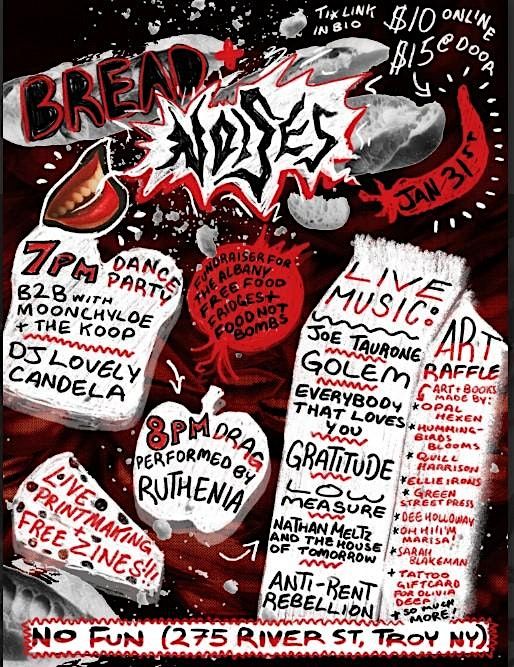 Byrdhouse Records presents Bread & Noises Fundraiser Show featuring many artists, bands, DJs, and drag on Saturday January 31st at No Fun!About this Event
