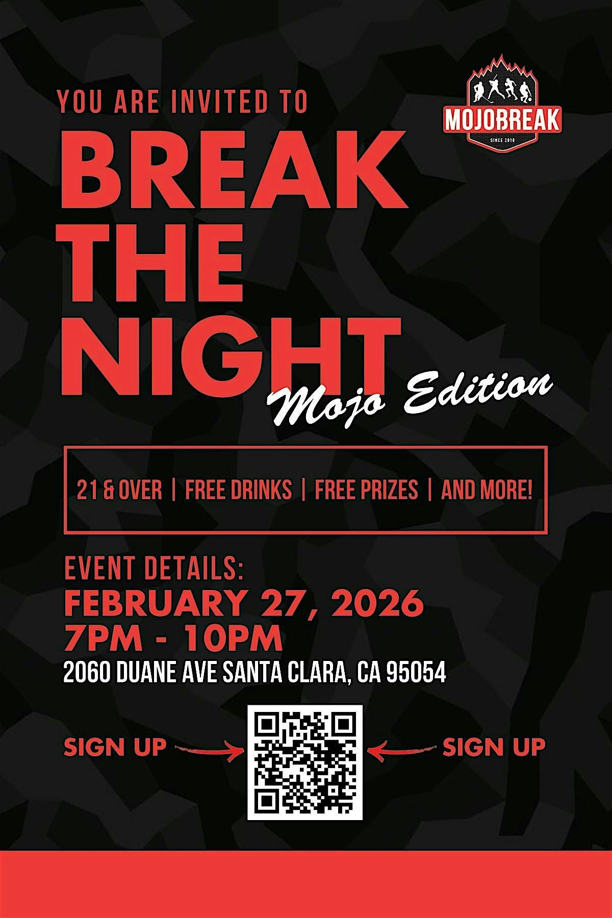 Experience the first-ever Break The Night: Mojo Edition with Mojobreak. Enjoy complimentary drinks, exclusive prizes, and an unforgettable atmosphere. Rip your favorite products alongside the Mojo crew at this elevated, high-energy event. Trust us- you won't want to miss it!