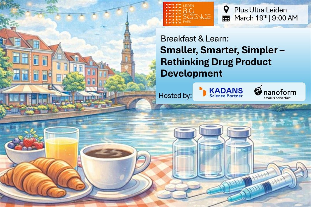 In this Breakfast & Learn session, we will share real-world case studies for both small molecules and biologics to explore how formulation strategies can reduce pill burden, enable more convenient administration routes, and ultimately improve patient compliance. The session is designed as an informal forum for learning, discussion, and networking within the Leiden life science ecosystem and is open to biotech and pharma professionals as well as interested scientists and students.