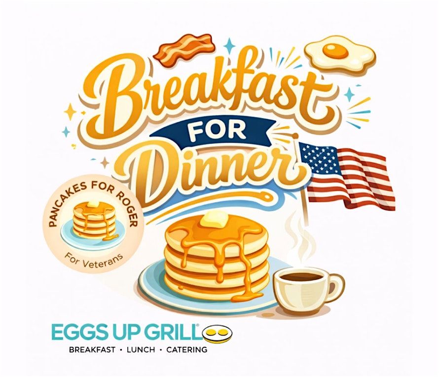 Join us on Friday, April 17 for a fun, family-friendly Breakfast for Dinner fundraiser benefiting Pancakes for Roger, Inc. at Eggs Up Grill in Alpharetta.