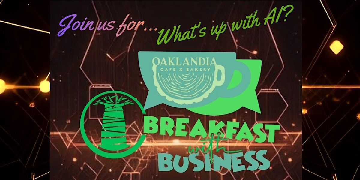 We're back at it with another opportunity to tap in on upcoming events, initiatives and policy affecting small business in Oakland!! Our Breakfast With Business morning mixers are informal, unscripted opportunities for sharing and discovery. Big gratitude to downtown's tastiest, Black owned bakery and cafe @Oaklandia for partnering with us and always offering safe, comfortable space, hot and fresh menu and coffee on ready pour! Please also consider this an invitation to bring your AI related thoughts, concerns and experience to the table. Join us for our bimonthly breakfast mixer BREAKFAST WITH BUSINESS Thursday, Apr 23. AI is the discussion prompt because the time to start asking questions passed long while ago, but the time to keep asking is now!