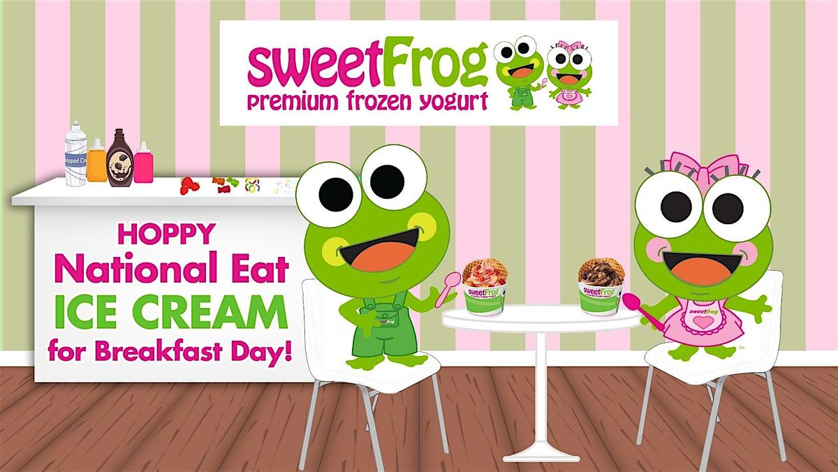 Start your day the sweetest way at sweetFrog! Join us as we celebrate National Ice Cream for Breakfast Day with a special froyo breakfast, and our sweetFrog Mascot.