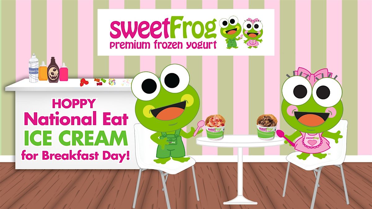 Start your day the sweetest way at sweetFrog! Join us as we celebrate National Ice Cream for Breakfast Day with a special froyo breakfast, and our sweetFrog Mascot.