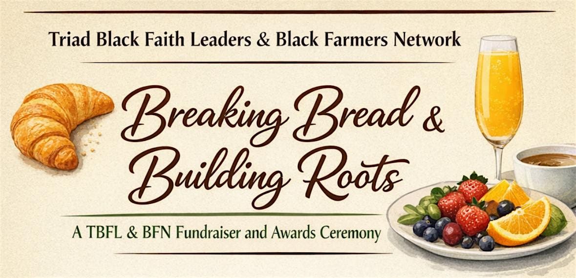 Join us for Breaking Bread & Building Roots, a community-centered brunch celebrating Black farmers, food justice, and the power of local food systems. This gathering brings together farmers, supporters, and community partners to share a nourishing meal, honor the work happening across our network, and invest in a more just and resilient food future for Greensboro.