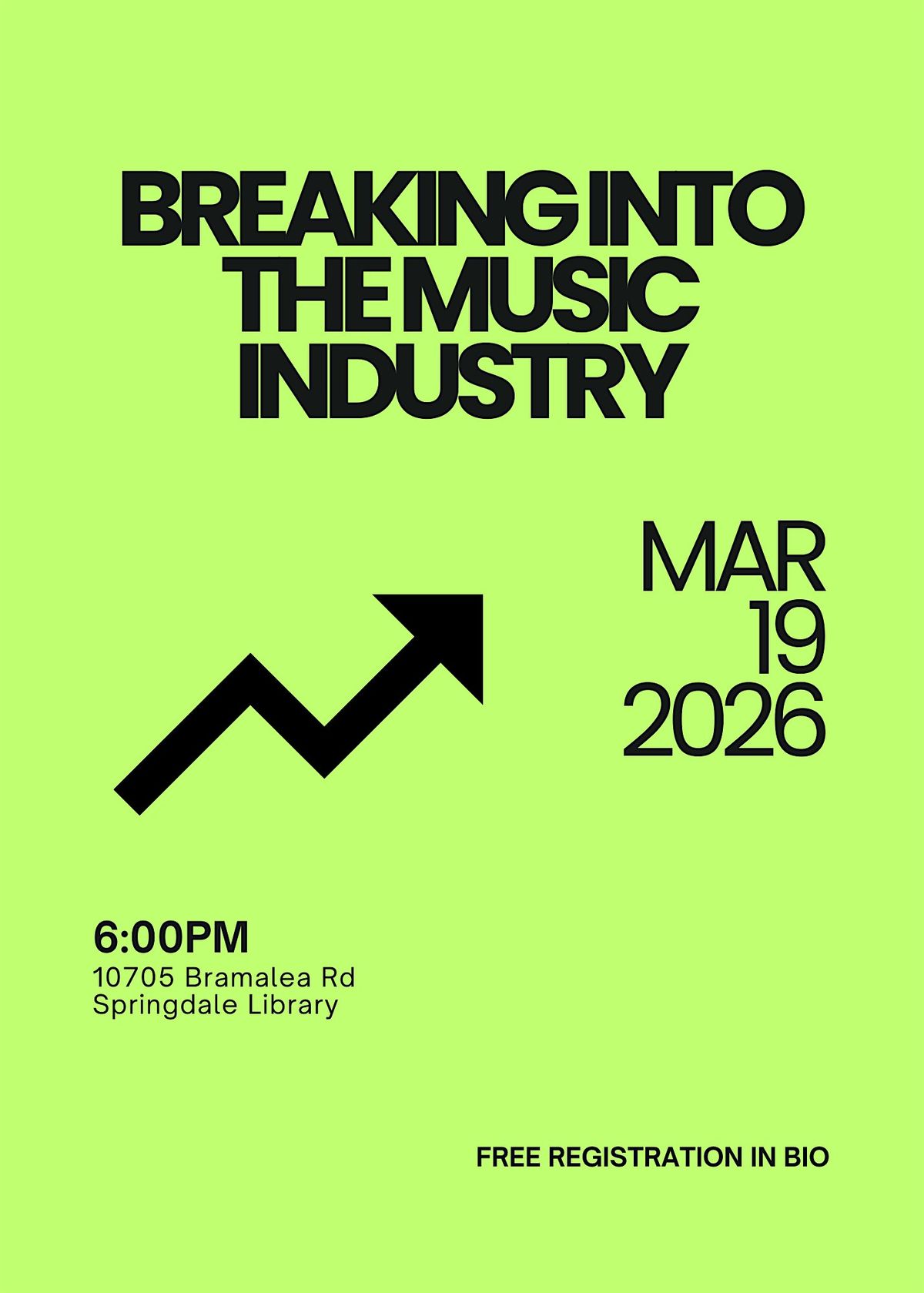 TEEN PROGRAM. Dive into the music business with Brampton Artist Ambassador Spitty. This free workshop is designed for anyone who wants to start their music journey. We won't be discussing how to make music, but instead will focus on topics like social media content, branding, booking live performances, collaborations/networking, and making money.