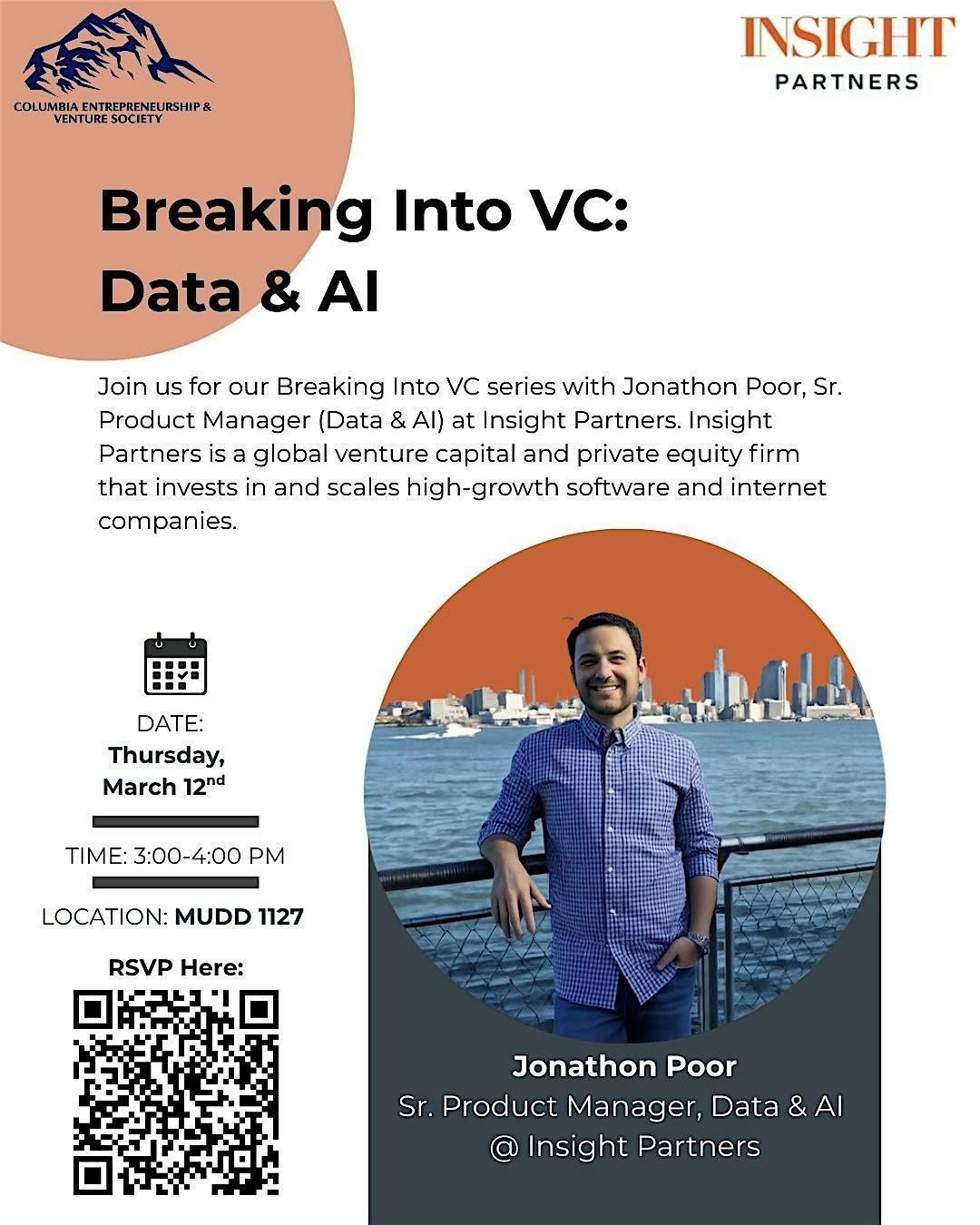 Join us for an exclusive session with Jonathan Poor, Sr. Product Manager of Data & AI at Insight Partners, one of the world's leading venture capital and private equity firms. Jonathan will take us behind the scenes of the Data & AI landscape — sharing what's driving the industry right now, what investors are looking for, and what it takes to build a successful venture in this space.