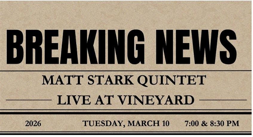 BREAKING NEWS! MATT STARK QUINTET LIVE AT THE VINEYARD TUESDAY MARCH 10
