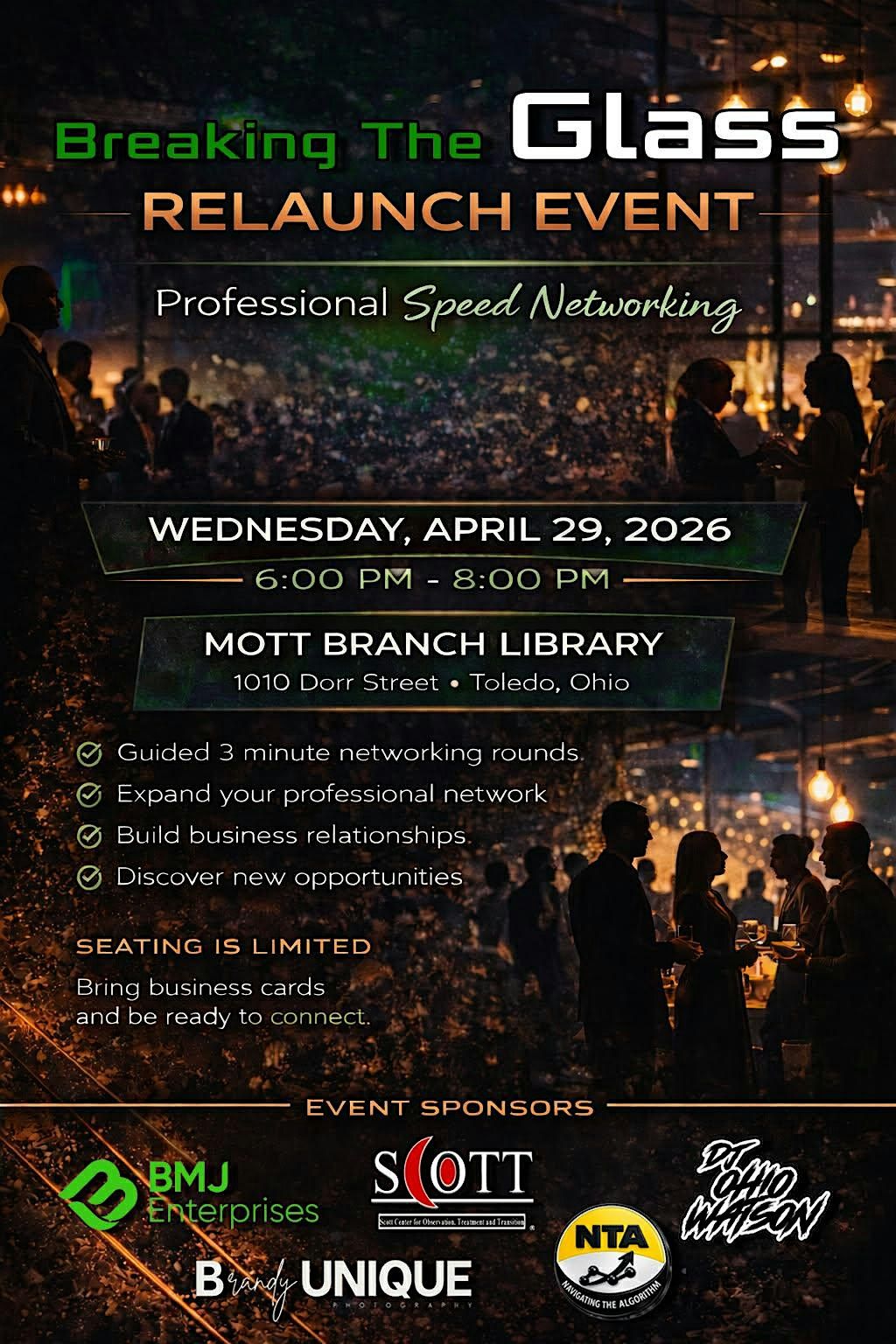 This event is powered by our sponsors: BMJ Enterprises, Scott Center for Observation, Treatment and Transition, DJ Ohio Watson, Navigating The Algorithm (NTA), and Brandy Unique Photography, all working together to build connections and create opportunity.