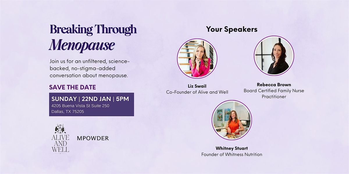 Join us for an evening focused on demystifying the taboos of menopause. Alive and Well and MPowder coming together to inspire women to take back their power.