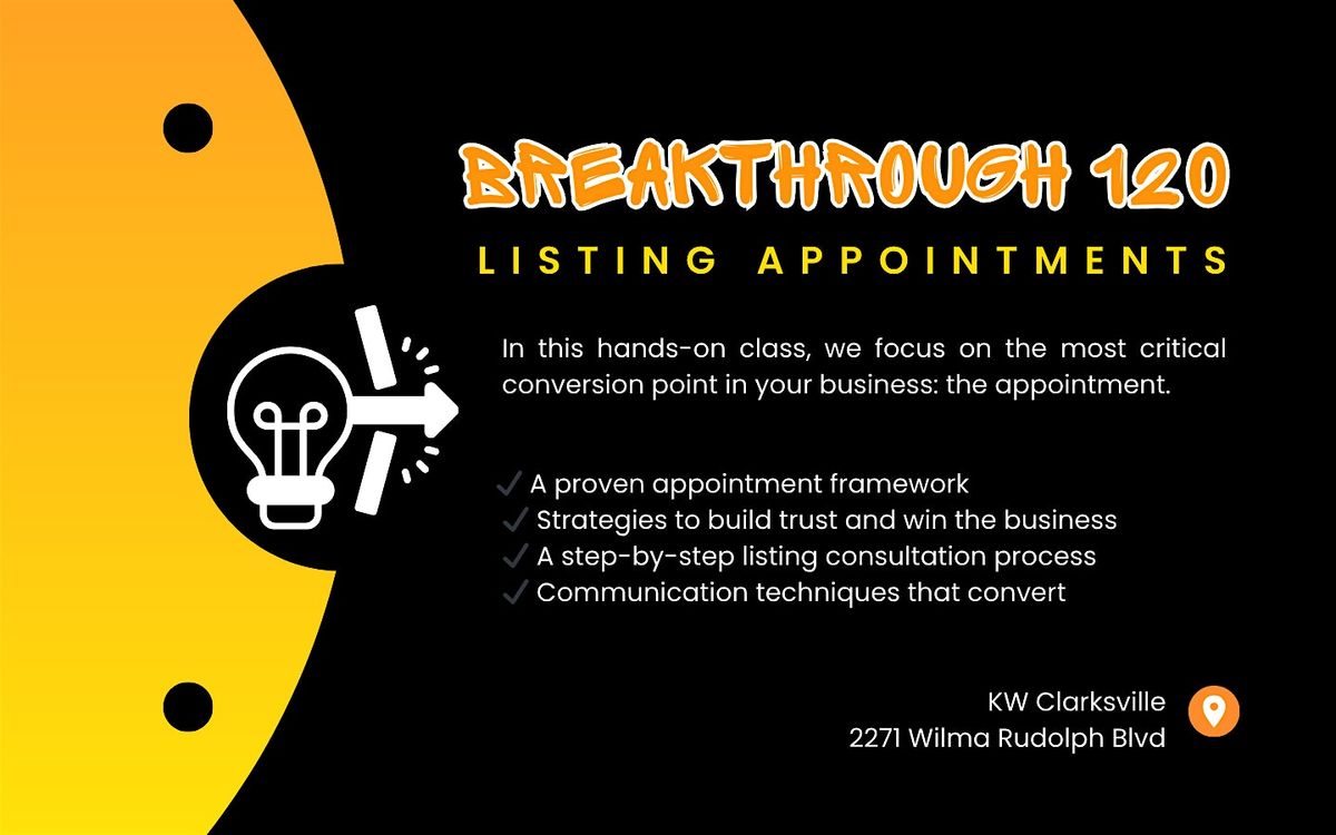 In this Breakthrough 120 session, we focus on the most critical conversion point in your business: the appointment. This is where you earn trust, demonstrate your value, and guide clients to a confident decision.