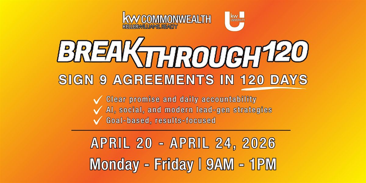 Breakthrough 120 is designed for ALL agents who want to secure 9 new contracts in the next 120 days β whether you're brand new to real estate or an experienced agent ready to increase production.