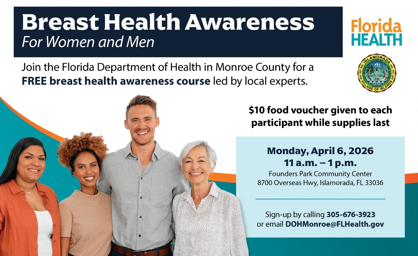 Join the Florida Department of Health in Monroe County for a breast health awareness course led by local experts. The course is FREE, and all are welcome to attend.