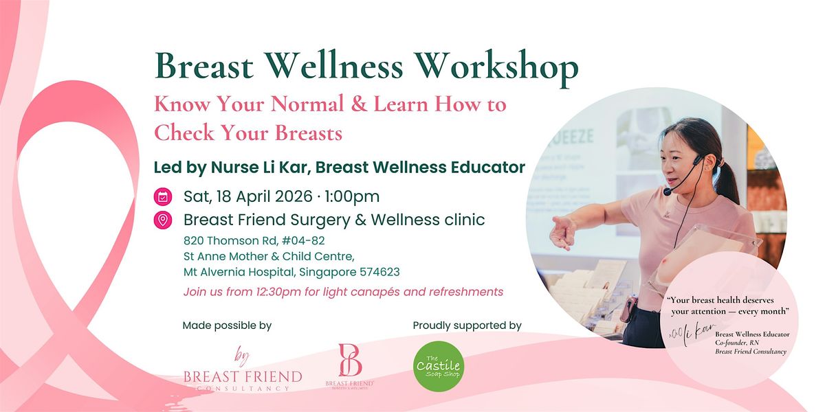 Led by Registered Nurse and Breast Wellness Educator Ms Leong Li Kar, who brings over 20 years of clinical experience as a registered nurse working with patients in surgical and specialist settings, this small-group session focuses on building breast awareness, body literacy, and confidence in knowing your normal.