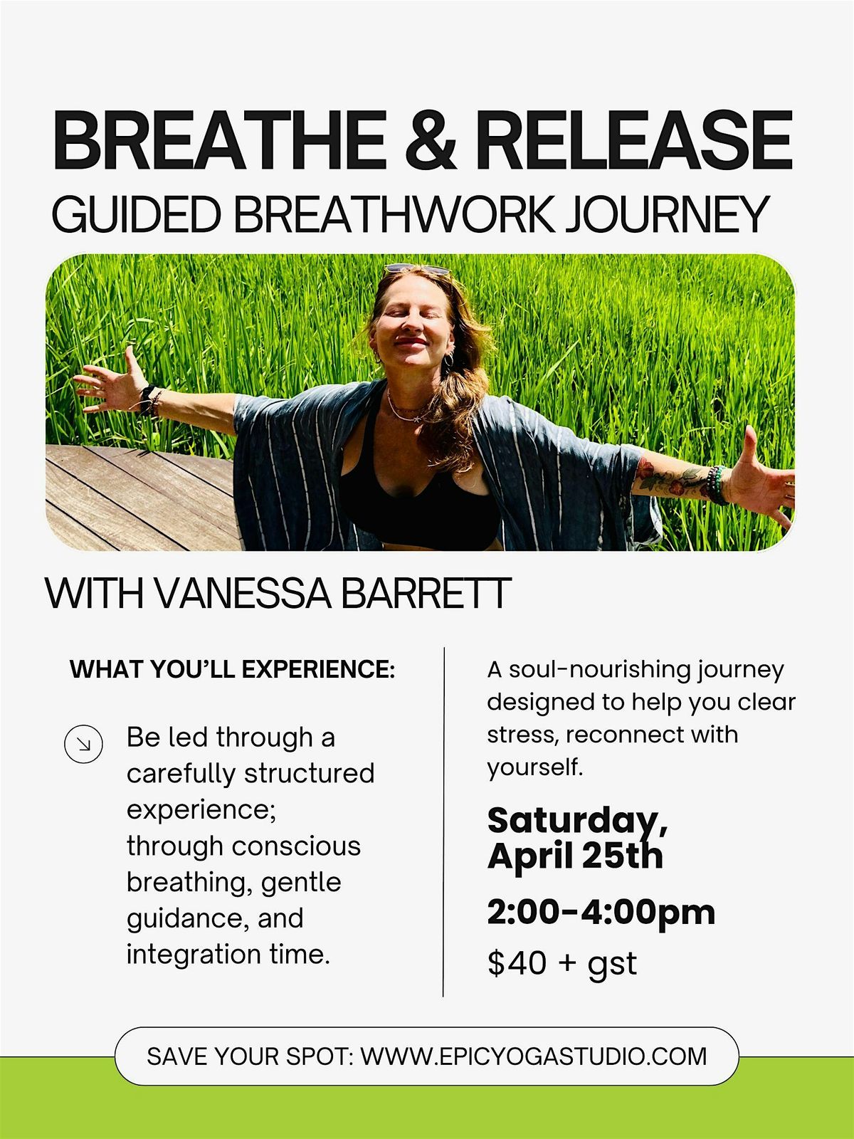 No prior breathwork experience is necessary. Simply come as you are and allow your breath to guide the journey. It’s not about “doing it right” — it’s about letting the breath take you where you need to go.