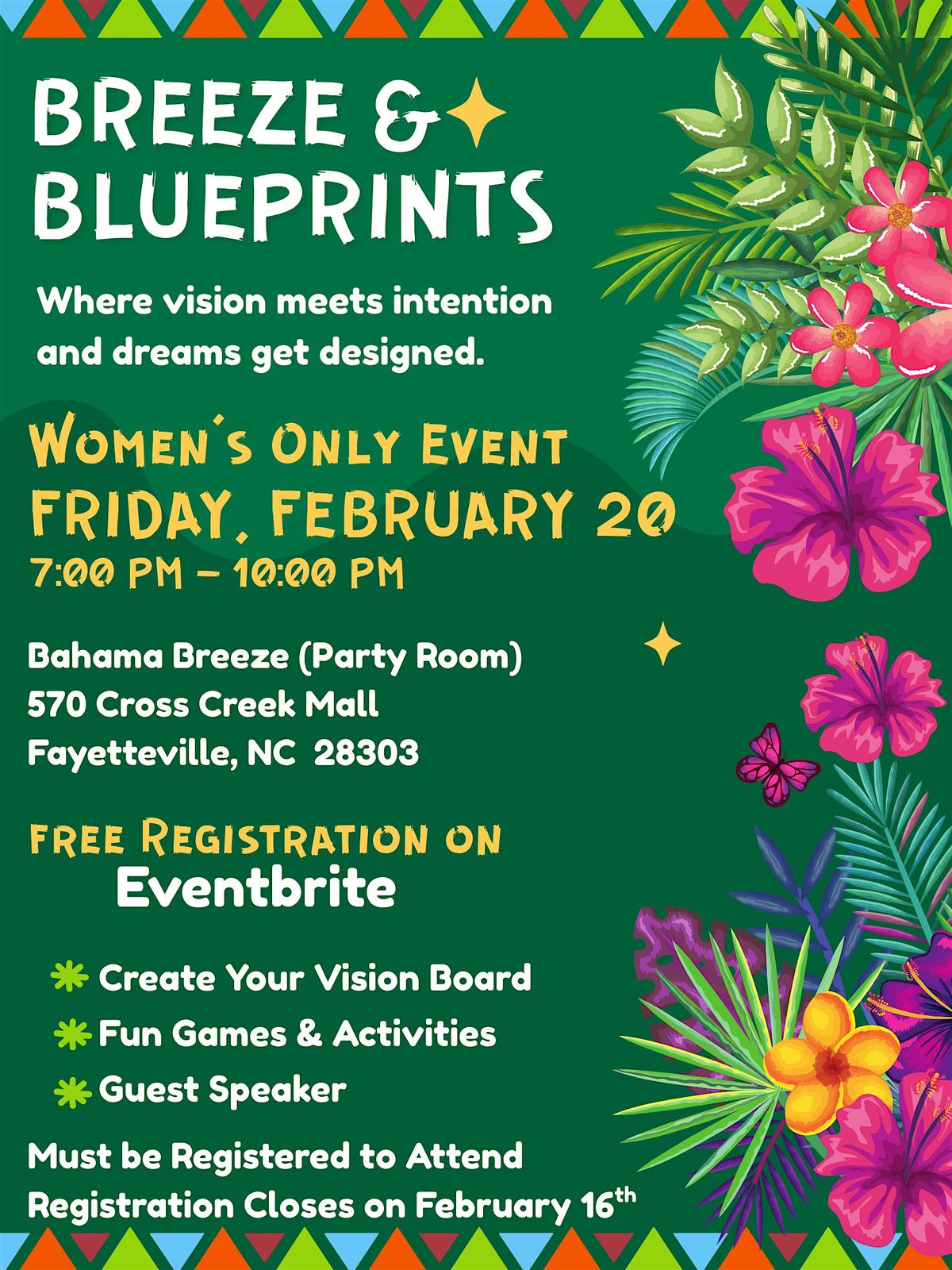 Get ready for an inspiring women’s-only experience where vision meets intention and dreams get designed. Set in the relaxed, tropical atmosphere of Bahama Breeze, this February gathering is all about clarity, creativity, and connection.