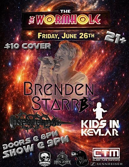 Get ready, Savannah! Brenden Starr is bringing the energy to The Wormhole on Friday, June 26th with special guests Nocturnae and Kids In Kevlar. It’s a 21+ show, $10 cover, with doors at 8 PM and music at 9 PM. Don’t miss a night of killer live rock and unforgettable performances.