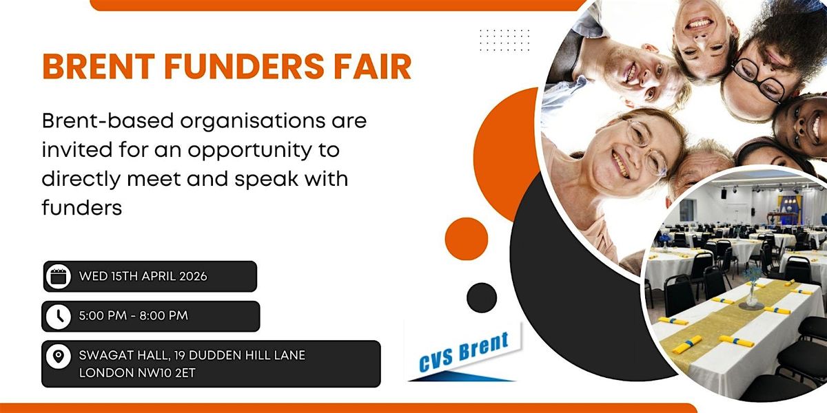 Brent’s voluntary and community organisations are invited to join CVS Brent for our Funders Fair 2026 on Wednesday, 15 April, from 4:00pm to 8:00pm at the Brent Indian Community Centre, Swagat Hall, 19 Dudden Hill Lane, Willesden, London NW10 2ET.